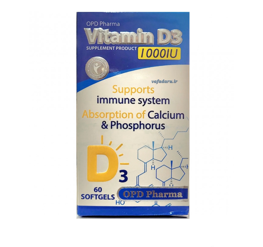 کپسول ژله ای ویتامین د3 1000 واحد opd pharma ۶۰ عددی