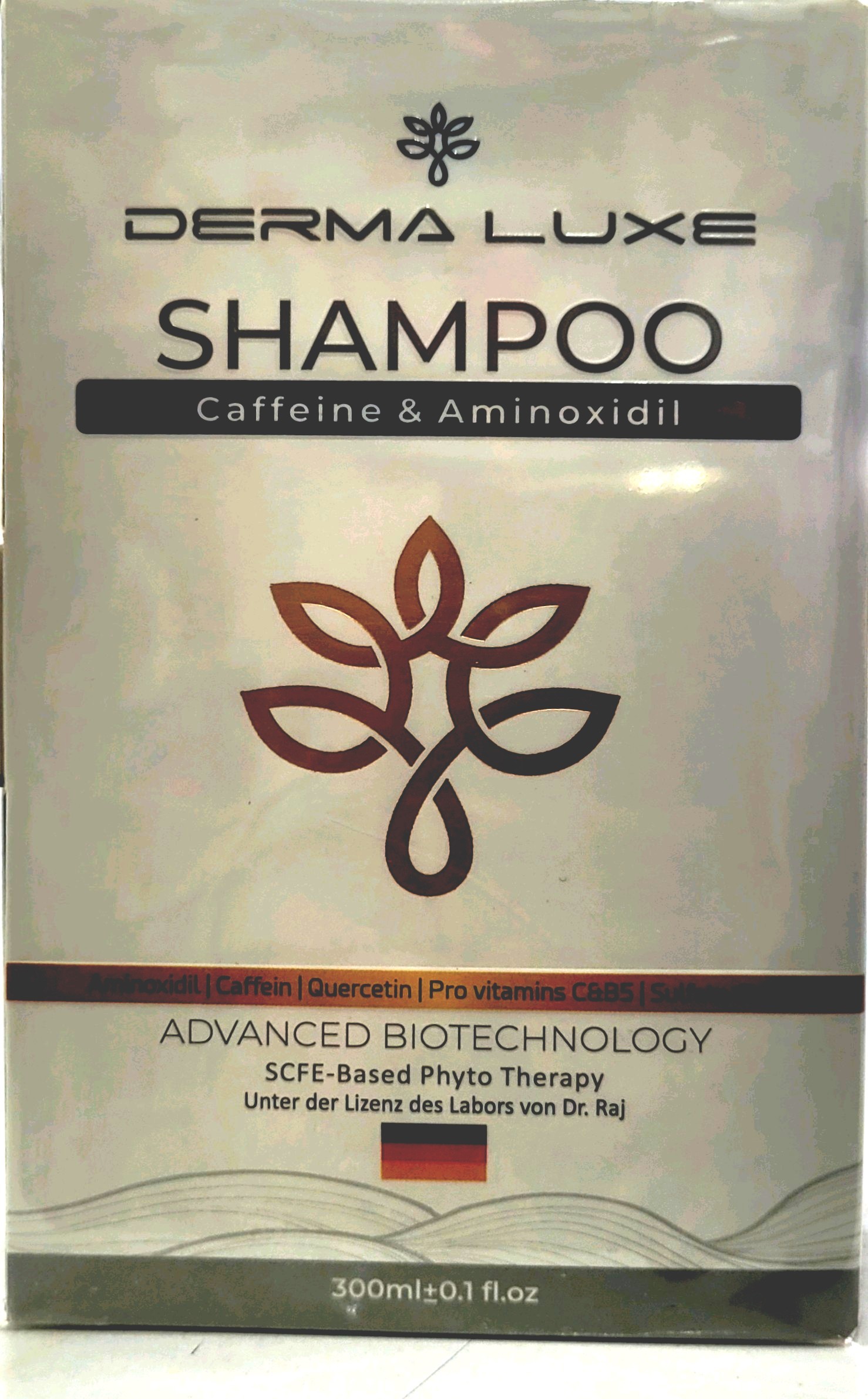 شامپو ضد ریزش و رویش مجدد مو حاوی ماینوکسیدیل و کافئین بدون سولفات درمالوکس 300 میلیلیتر
