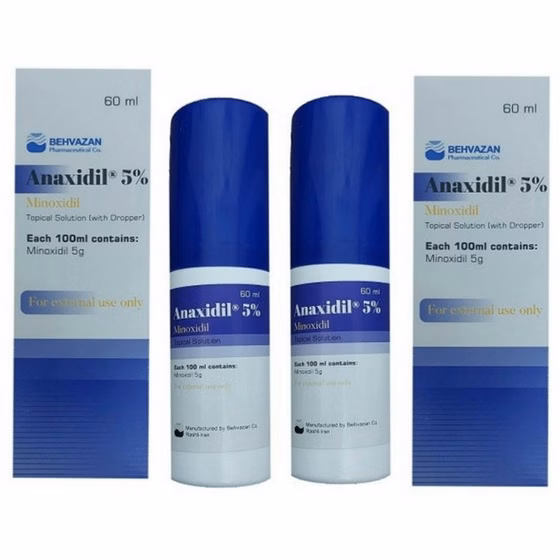 محلول ماینوکسیدیل 5 درصد محرک رشد مو بهوزان حجم 60 میلی لیتر بسته 2 عددی