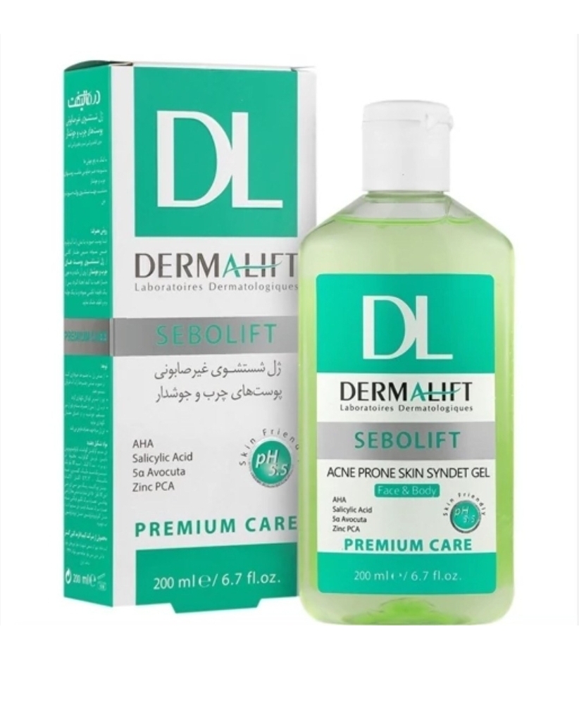 ناموجودژل شستشو صورت درمالیفت مدل سبولیفت sebolift مناسب پوست چرب و جوشدار حجم 200 میلی لیتر