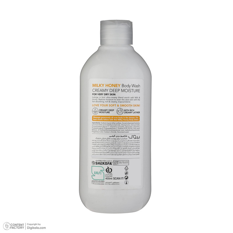 شامپو بدن بیول مدل شیر و عسل حجم 400 میلی لیتر