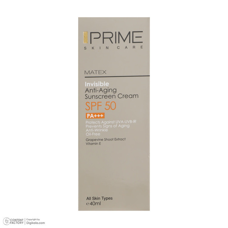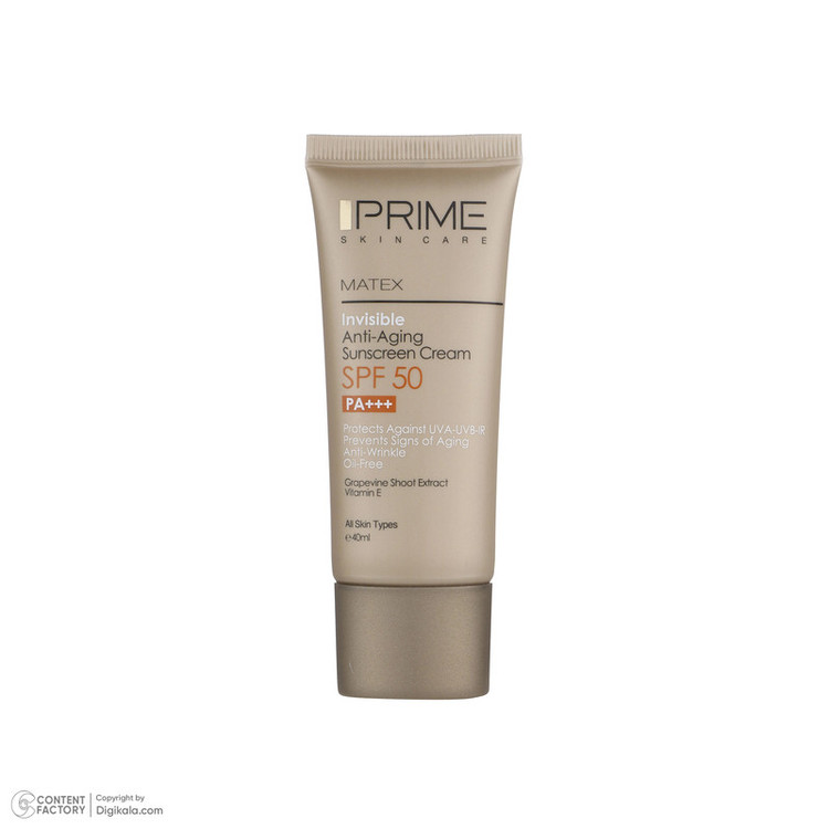 کرم ضد آفتاب و ضد چروک بی رنگ پرایم مدل Matex Colorless SPF50 مناسب انواع پوست حجم 40 میلی لیتر