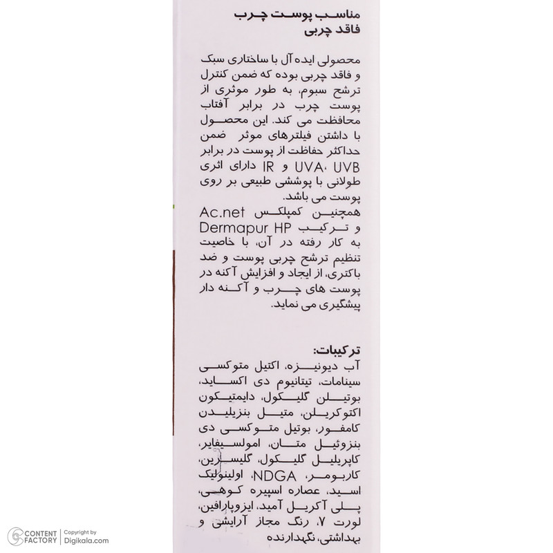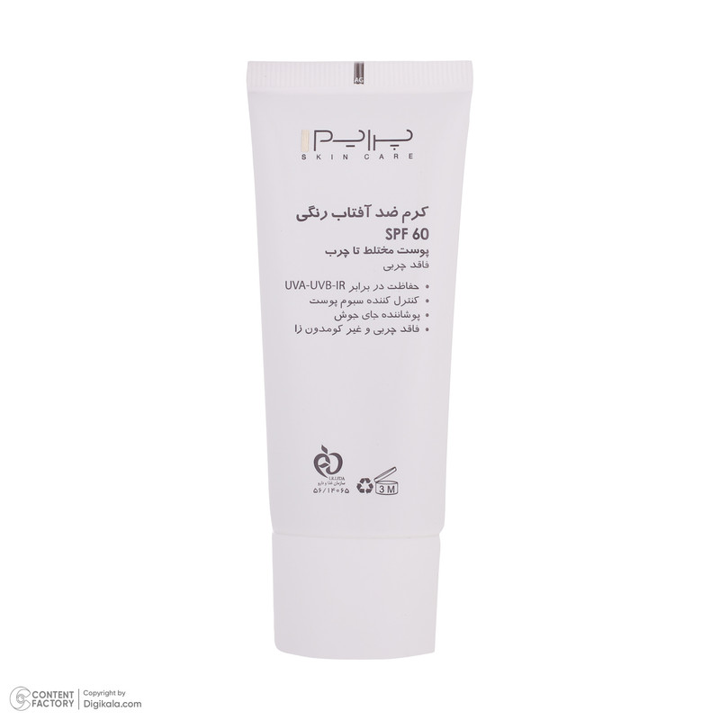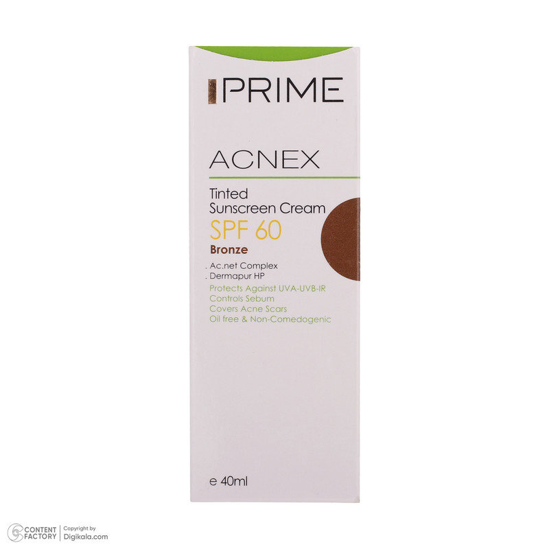 کرم ضدآفتاب رنگی پرایم مدل Acnex SPF60، مناسب پوستهای چرب، حجم 40 میلیلیتر