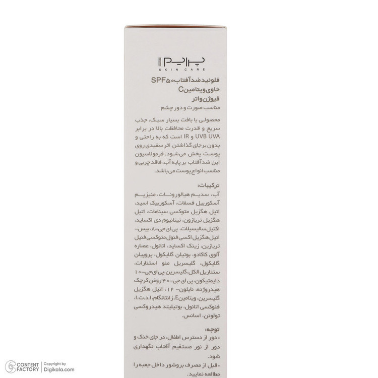 لوسیون ضدآفتاب بیرنگ پرایم با فرمولاسیون ضد آفتاب فیزیکی، محافظت کاملی از پوست در برابر اشعههای مضر UVA و UVB ارائه میدهد. این محصول با SPF 50 و PA+++، از پوست در برابر آسیبهای ناشی از نور خورشید محافظت میکند. بافت سبک و بدون رنگ این لوسیون، برای انواع پوستها مناسب است و به راحتی جذب میشود. ترکیبات این لوسیون شامل عصارههای طبیعی آفتاب گردان، گل مغربی و آلوئه ورا است که به مرطوبکنندگی و تغذیه پوست کمک میکنند. این محصول فاقد پارابن و چربی است و از ایجاد جوش و کومدون جلوگیری میکند. ویژگیهای ضد آب این لوسیون، آن را به انتخابی عالی برای استفاده در روزهای گرم و مرطوب تابستانی تبدیل میکند. این لوسیون با بافت سبک و جذب سریع، بدون ایجاد حس سنگینی یا چسبندگی، به راحتی روی پوست پخش میشود و محافظتی کامل و موثر را فراهم میکند. این محصول مناسب برای بانوان است و میتواند به راحتی در روتین روزانه مراقبت از پوست جای بگیرد.