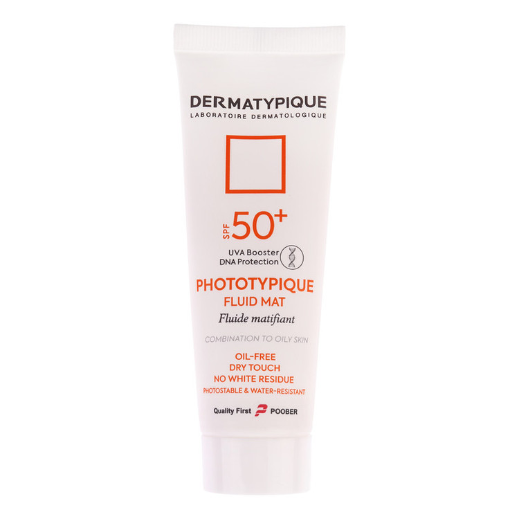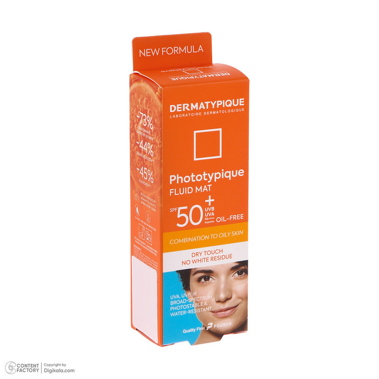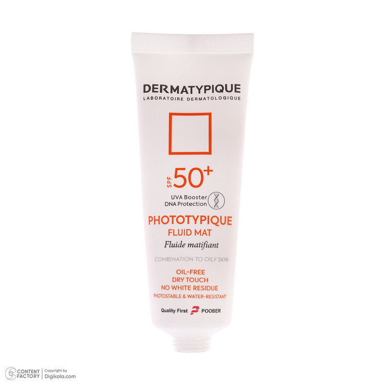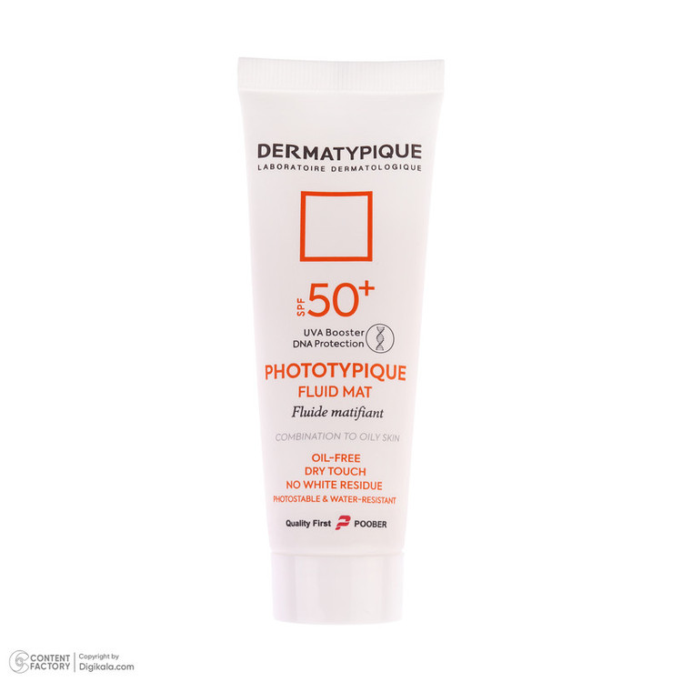 فلوئید ضد آفتاب بدون رنگ درماتیپیک مدل مات محافظ UVA،UVB مناسب برای پوست چرب حجم 50 میلی لیتر