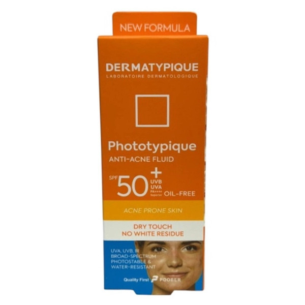 فلوئید ضد آفتاب بدون رنگ درماتیپیک مدل anti acne محافظ UVA،UVB مناسب برای پوست چرب حجم 40 میلی لیتر