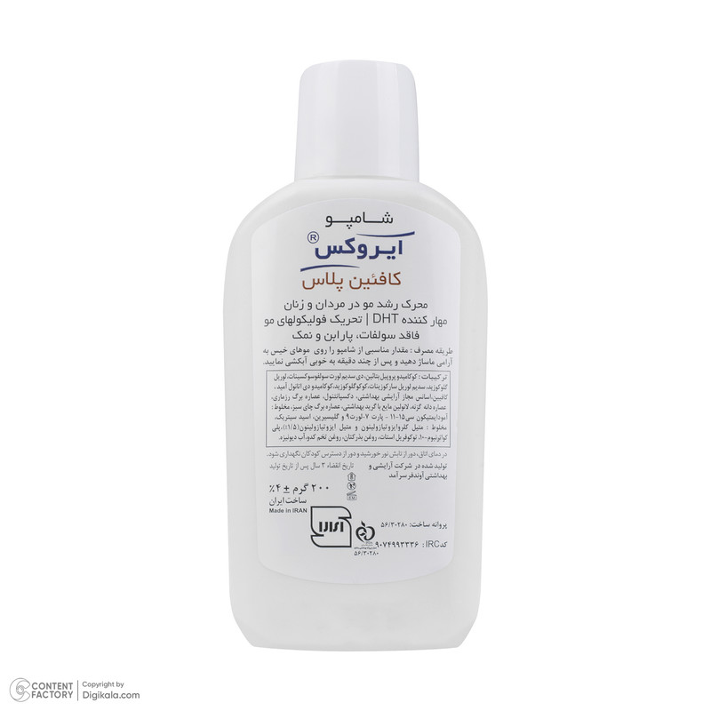شامپو مو ایروکس مدل Coffein Plus حجم ۲۰۰ میلیلیتر