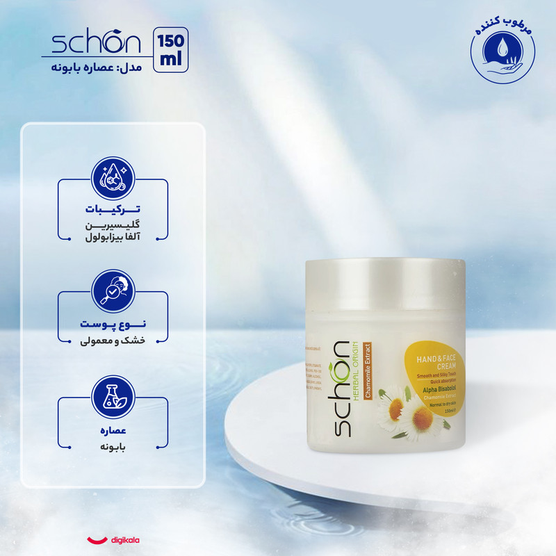 کرم مرطوبکننده دست و صورت شون مدل عصاره بابونه حجم 150 میلیلیتر