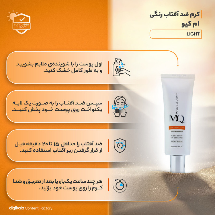 کرم ضدآفتاب رنگی ام کیو مدل LIGHT BEIGE-Normal، حجم 55 میلیلیتر