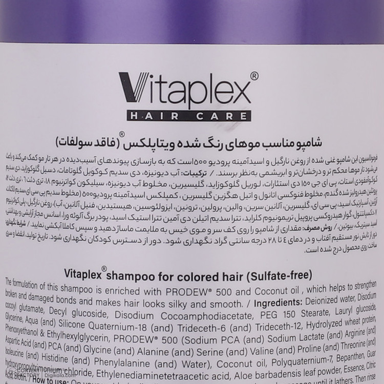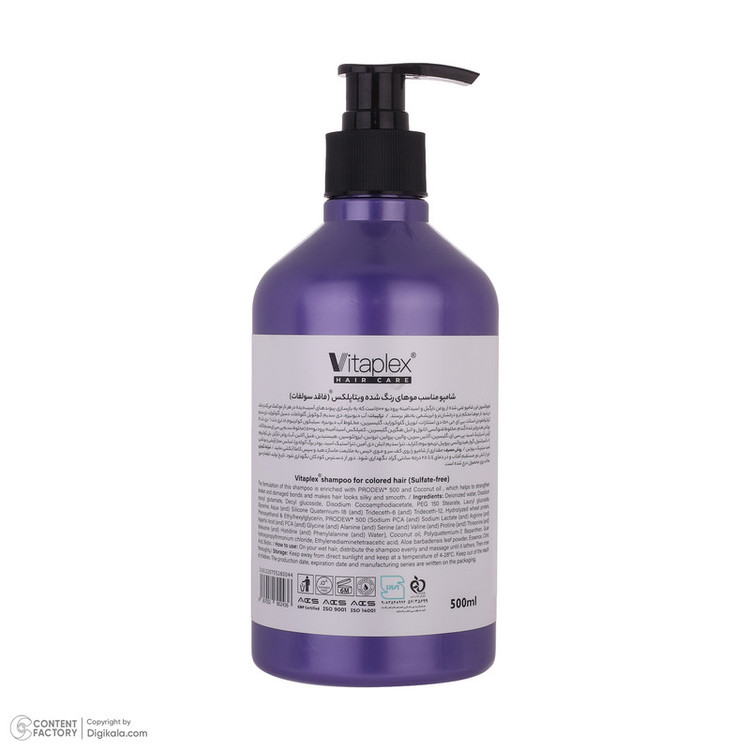 شامپو تثبیت کننده رنگ مو ویتاپلکس مدل CC01 مناسب موهای رنگ شده حجم 500 میلی لیتر