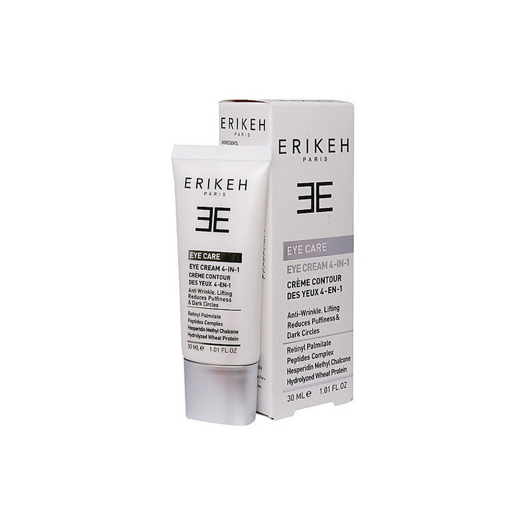 خستگی، استرس و اضطراب می تواند باعث شود چهره ی شما بسیار خسته دیده شود و تیرگی و پف زیر چشم شما را افزایش دهد. با استفاده از کرم دور چشم 4 در 1 اریکه می توانید سلامتی را به زیر چشمان خود باز گردانید. این کرم دور چشم با فرمولاسیون ویژه ای که درون خود دارد می تواند با افزایش جریان لنف در پوست زیر چشم، تیرگی های زیر چشم را کاهش داده و می تواند باعث روشن شدن و شفافیت پوست زیر چشم شود. ترکیبات مرطوب کننده موجود در این کرم باعث می شوند که از خشکی پوست اطراف چشم جلوگیری کرده و با افزایش الاستین به انعطاف پذیری و لیفت این قسمت از صورت جلوگیری می کند. حاوی فیلتر های ضد آفتاب و خواص آنتی اکسیدانی بوده که می تواند از آفتاب سوختگی و آسیب دیدگی های رادیکال های آزاد جلوگیری کرده و در نتیجه پوست اطاف چشم سالم بماند. کرم دور چشم اریکه از افتادگی پلک جلوگیری کرده و مانع از ایجاد پف زیر چشم می شود. موادی که درون کرم دور چشم اریکه به تخلیه ی آب میان بافتی کمک می کنند، کاهش پیدا کرده و باعث می شوند که پوست زیر چشم سرحال و شاداب شود. علاوه بر موارد گفته شده می توان چین و چروک هایی که در اطراف چشم بوجود آمده باشد را کاهش داده و باعث جوانسازی پوست شد.