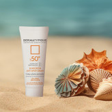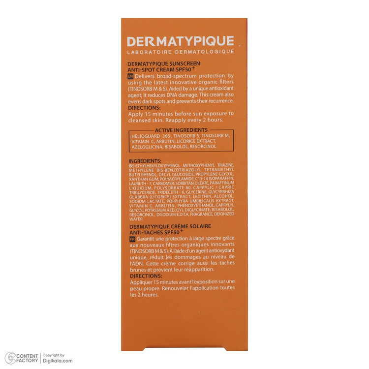 از جمله مشکلاتی که نور خورشید برای پوست ایجاد میکند، ایجاد لک و تیره شدن پوست است که اصطلاحاً به آن آفتاب سوختگی می گویند. ضدآفتاب روشن کننده درماتیپیک SPF50 ضمن محافظت از پوست به کاهش این مشکلات بسیار کمک می کند. این ضدآفتاب حاوی ترکیبات روشن کنندگی است و به روشن شدن رنگ پوست کمک میکند، همچنین باعث کاهش لکهای ناشی از آفتاب سوختگی، لیزر، بالا رفتن سن، تغییرات هورمونی و … میگردد. ضد آفتاب درماتیپیک فاقد چربی است و اگر پوست چربی دارید میتوانید بدون آنکه نگران افزایش ترشح چربی یا ایجاد جوش باشید از آن استفاده کنید. همچنین بافت آن سبک بوده و به راحتی جذب پوست می گردد. درجه حفاظتی (SPF) این ضد آفتاب 50 است و به این معنی است که از تاثیر 98 درصد از اشعههای مضر روی پوست جلوگیری میکند و آسیبهای ناشی از اشعههای UV خورشید را کاهش میدهد. این محصول با فرمولاسیونی ویژه و با استفاده از تازهترین فیلترهای ضد آفتاب از پوست صورت و گردن بطور عمیق محافظت میکند و ترکیبات آبرسان موجود در آن مانع از خشکی پوست میگردند.