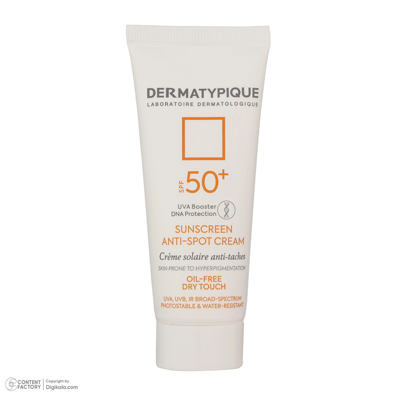 کرم ضدآفتاب بیرنگ درماتیپیک SPF50 مدل Anti spot مناسب انواع پوست، حجم 40 میلیلیتر