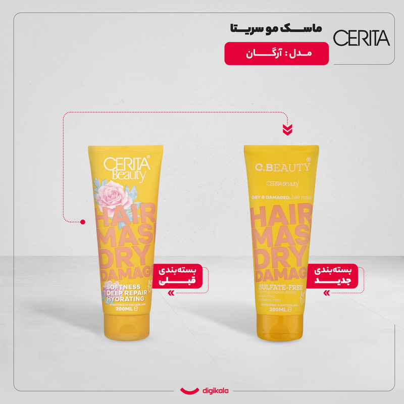 ماسک مو سریتا مدل آرگان مناسب مو خشک و آسیب دیده حجم 200 میلی لیتر