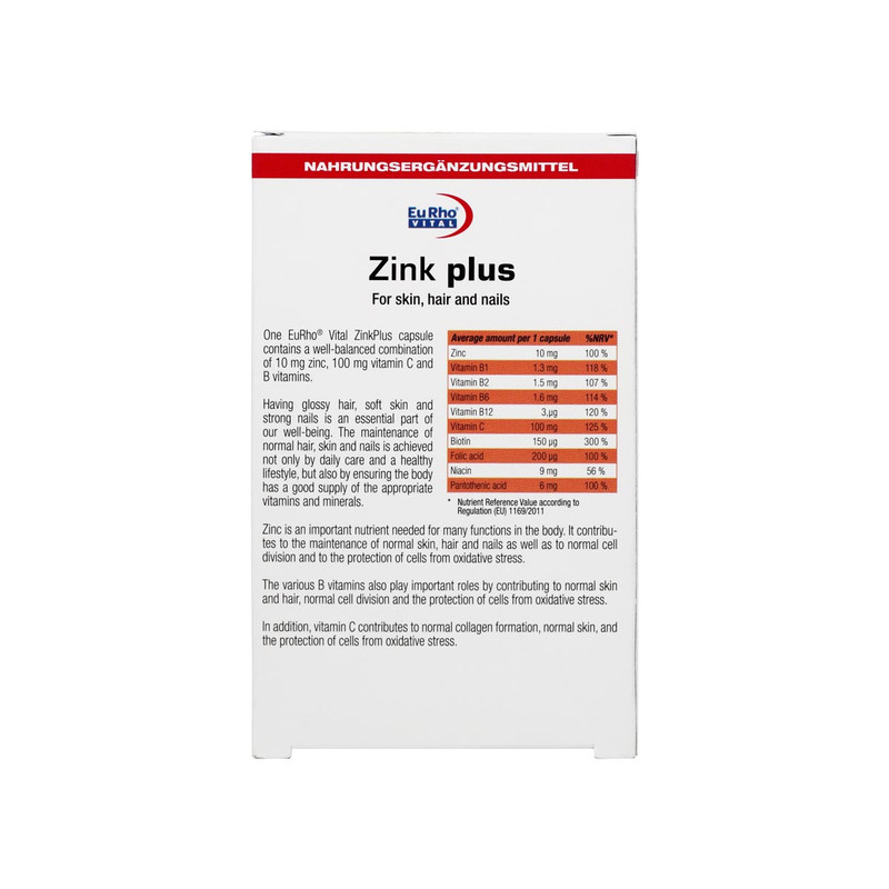 کپسول زینک پلاس یورو ویتال- 10 میلی گرم بسته 60 عددی