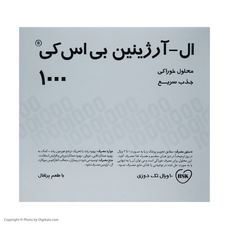 ویال ال آرژینین 1000 بنیان سلامت کسری بسته 10 عددی