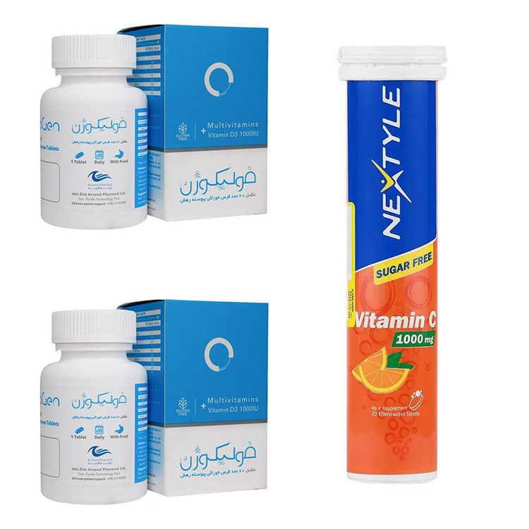 2 عدد قرص فولیکوژن اروند فارمد بسته 60 عددی - قرص جوشان ویتامین ث 1000 نکستایل بسته 20 عددی
