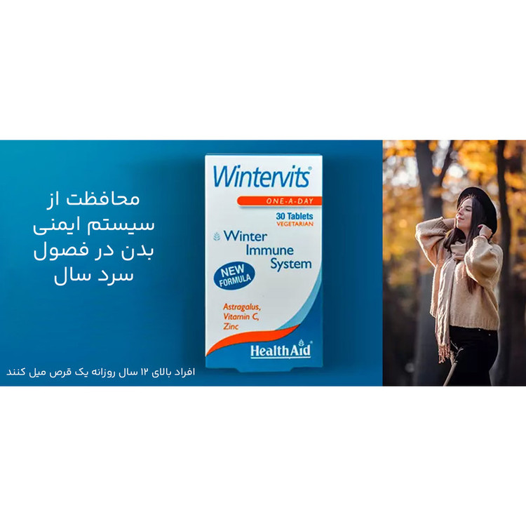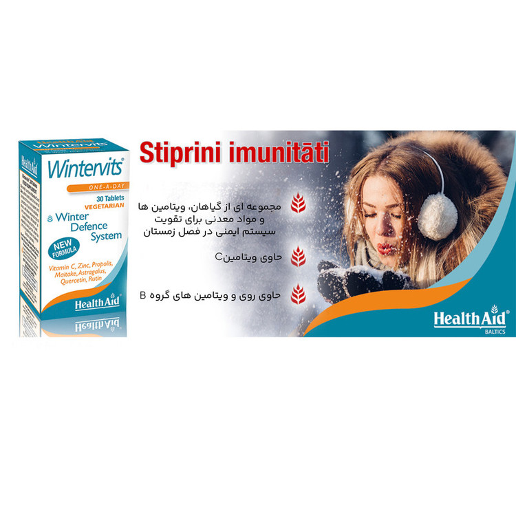 دیدن محصولات مرتبطقرص وینترویتس هلث اید حاوی قارچ مرغ چوب، ویتامین C، کوئرستین، روی، بره موم و گون است که برای کمک و حمایت طولانی مدت از بدن در ماه های زمستان، زمانی که سیستم ایمنی بدن ضعیف شده و نیاز به حمایت دارد، مورد استفاده قرار می گیرد. این قرص فاقد هر گونه مخمر، گلوتن، گندم، سویا، لبنیات، شکر، نمک، رنگ مصنوعی، نگهدارنده ها و طعم دهنده ها می باشد.