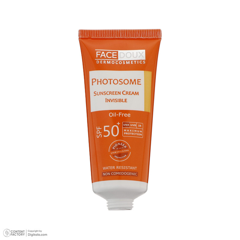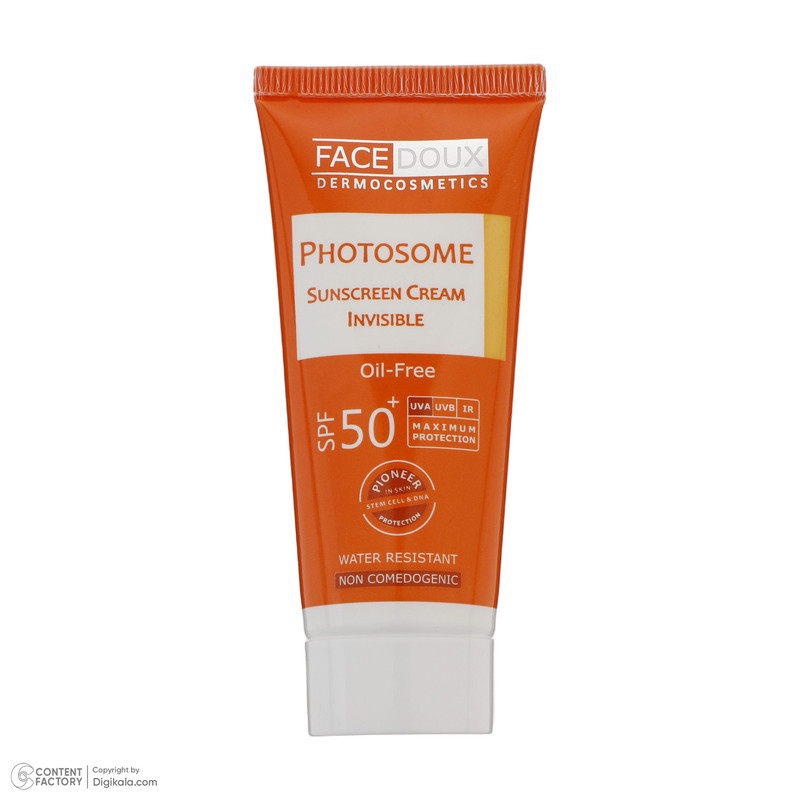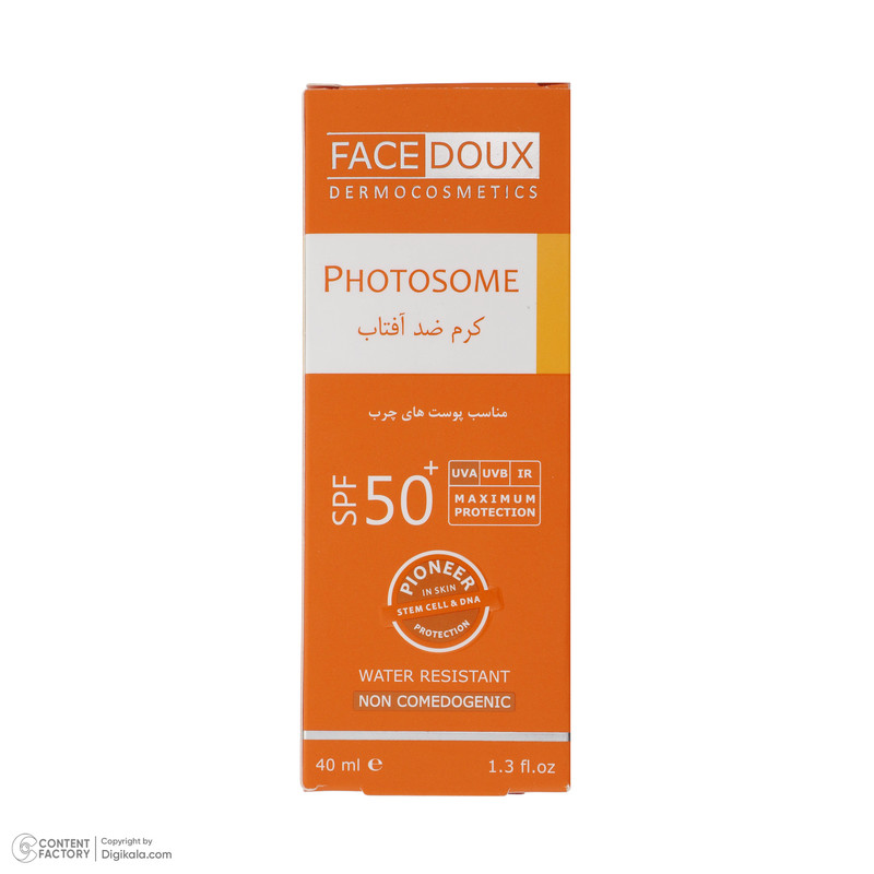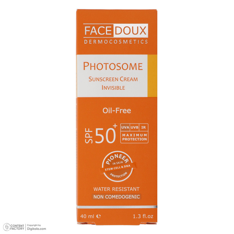 کرم ضد آفتاب بدون رنگ فیس دوکس SPF 50 مدل فوتوزوم محافظ اشعه UVA و UVB، ضد آب ‌مناسب پوست‌ چرب حجم 40 میلی‌لیتر