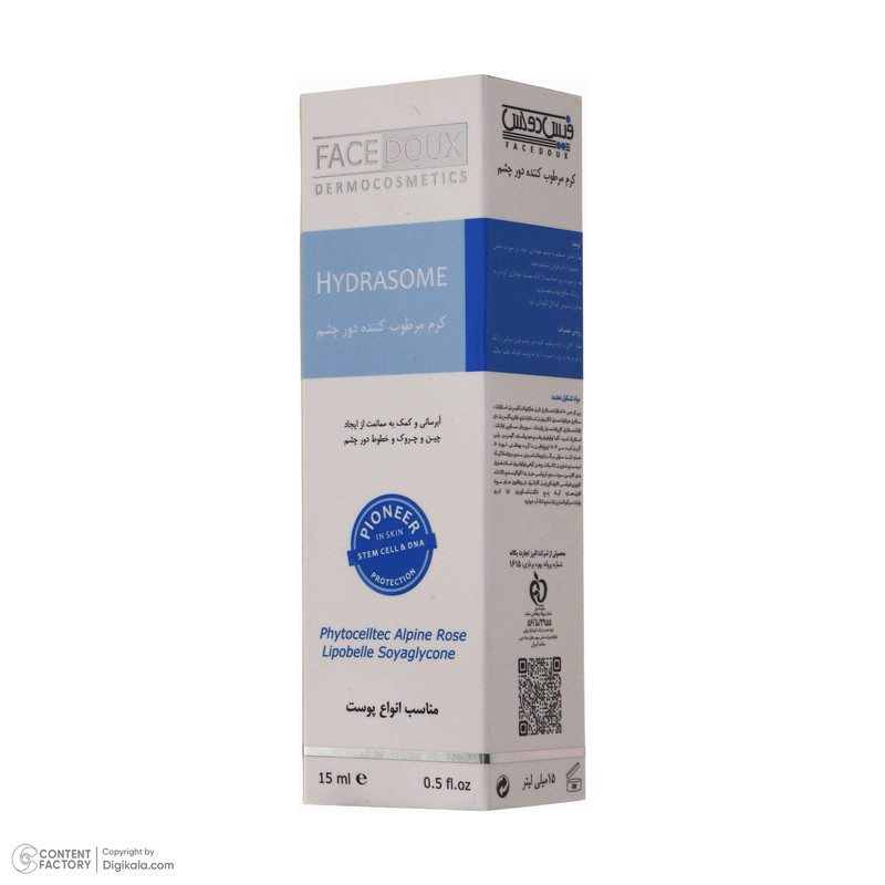 کرم مرطوب کننده دور چشم فیس دوکس مدل هیدروزام مناسب برای انواع پوست حجم 15 میلی لیتر
