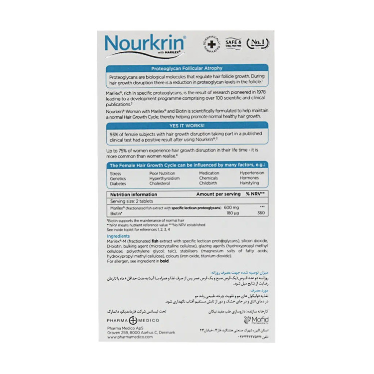 قرص نورکرین بانوان فارمامدیکو، چرخه رشد موهای خود را احیا کنید و به ریزش مو پایان دهید. این مکمل تخصصی با عصاره ماریلکس، ضخامت، استحکام و زیبایی را به موهای شما بازمیگرداند.