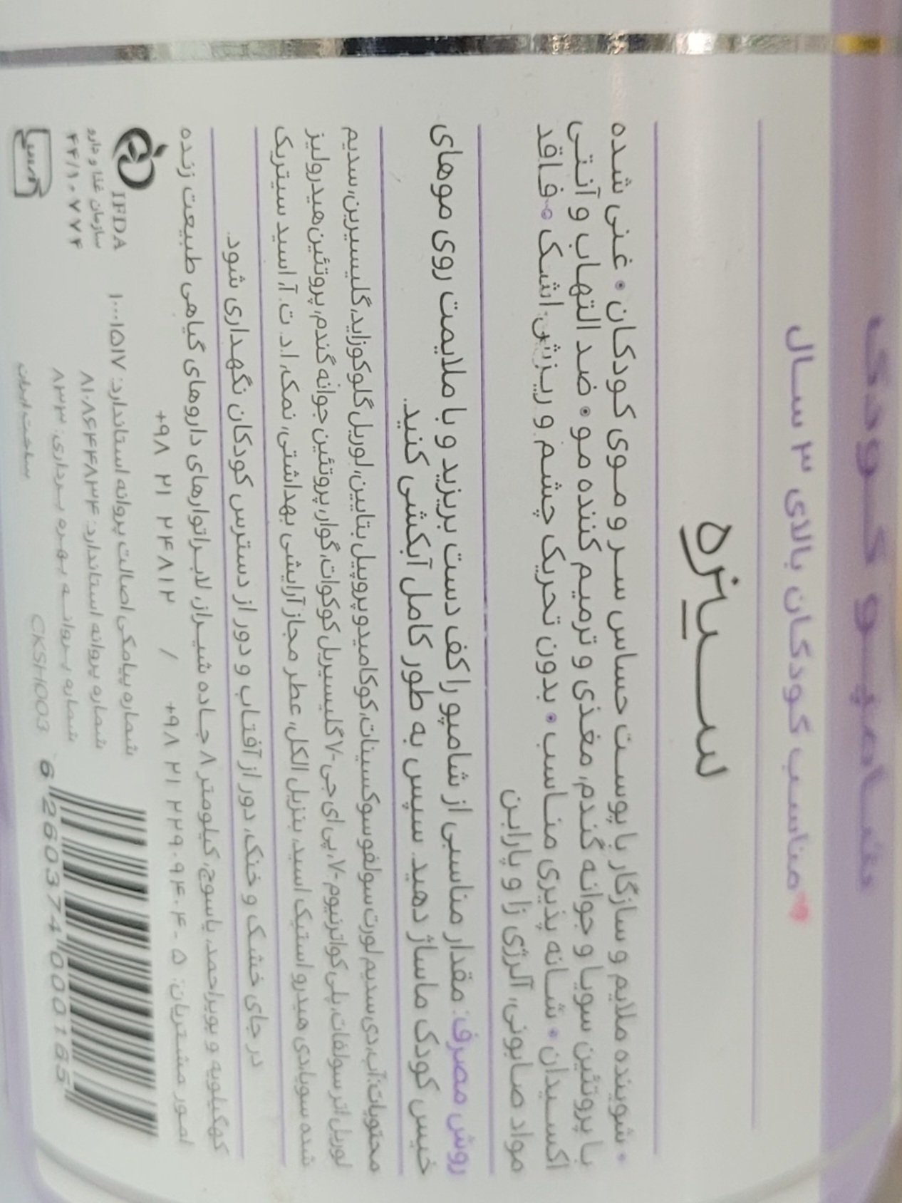 دستهبندی: شامپو کودک و نوزادخصوصیت: نرمکننده , حالتدهندهصادر کننده مجوز: سازمان غذا و داروحجم: 250 میلیلیترتاریخ انقضا: ۰۹/۱۴۰۵مناسب برای گروه سنی : نوزادان و کودکان تا ۳ سالنمایش بیشتر