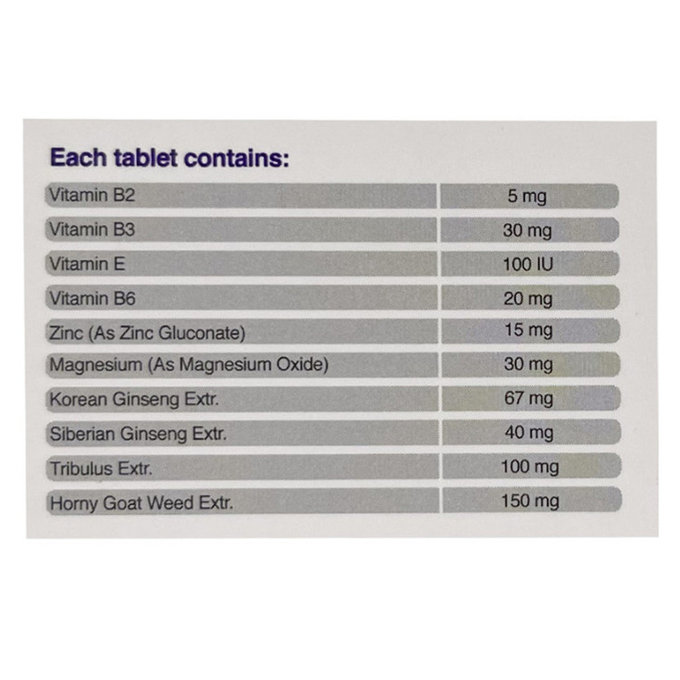 سایر توضیحات: حاوی عصاره گیاهانی همچون هورنی گوت وید، خارخاسک و جینسینگ