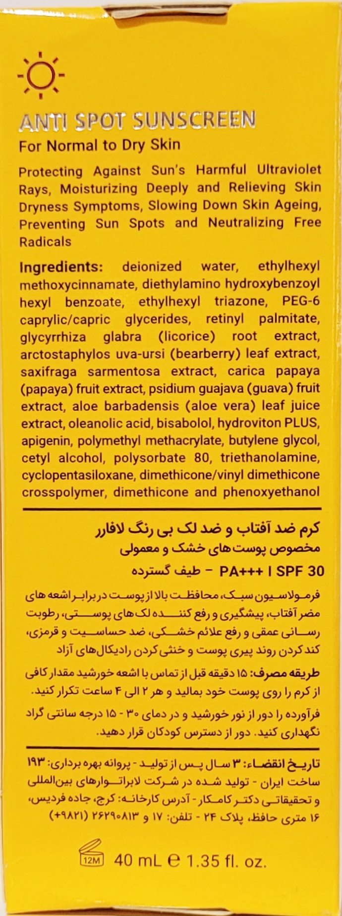 دستهبندی: کرم ضد آفتابمیزان رنگ: فاقد رنگنوع ضد آفتاب: کرمناحیه استفاده: صورتSPF: ۳۰سازگار با پوستهای : نرمال تا خشکحجم ضد آفتاب : ۴۰ میلیلیترویژگیهای ضدآفتاب : محافظت کننده در برابر اشعه آفتاب, ضدلکجنس محفظه : پلاستیکنوع محفظه : تیوبینمایش بیشتر