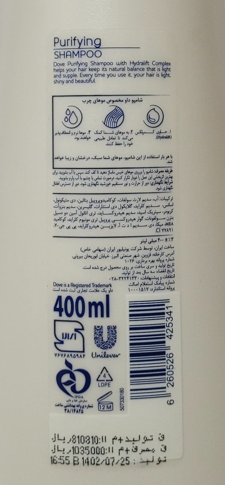 سازگار با موهایچربمناسب برایخانمها و آقایانراهنمای استفادهمقدار کافی از شامپو را روی موهای مرطوب ماساژ دهید تا خوب کف نماید. سپس آبکشی نمایید.