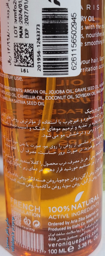 روغن پوست و مو برند ورونیک حجم ۱۰۰ میلی لیتر یک روغن بسیار عالی مناسب پوست صورت، بدن و مو می باشد. این روغن اصلا چرب نبوده و بسیار سبک و زود جذب می باشد. به خوبی پوست و مو را بازسازی کرده و آن را تغذیه می کند. این روغن روی استرچ مارک ها و ترک های پوستی هم به خوبی عمل می کند.