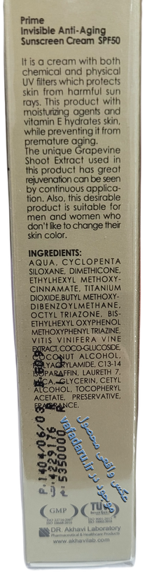 کرم ضدآفتاب یکی از پرکاربردترین و بهترین کرمهای مراقبتی پوست است که به محافظت از پوست در برابر نور خورشید کمک شایانی میکند. همه افراد حتما باید در طی روز از این کرم مفید استفاده کنند تا در جهت بهبود سلامت پوست و جلوگیری از بروز بیماریهای پوستی قدمی برداشته باشند. ضدآفتابها دارای فاکتور محافظتی در برابر خورشید یا همان SPF هستند که میزان محافظت آن کرم در برابر نور خورشید را نشان میدهد که بهتر است حداقل SPF30 را برای مراقبت از پوست دارا باشند. کرم ضد آفتاب بدون رنگ جوان کننده اس پی اف 50 پرایم، با بافت سبک خود به سرعت جذب پوست میشود، روی پوست ایجاد چربی و سنگینی نمیکند و از پوست در برابر اشعه مضر UVA و UVB محافظت میکند. این محصول حاوی عصاره تاک و ویتامین E ست، عصاره تاک مکانیسمی شبه بوتاکس و شبه رتینوئیدی دارد و در رفع چین و چروک سطحی پوست موثر است. ویتامینE سرشار از آنتی اکسیدان است، موجب رطوبت رسانی پوست میشود و در جوانسازی و جلوگیری از پیری پوست موثر است. ضدآفتاب جوان کننده پرایم به ترمیم و احیای پوست کمک میکند و یکی از مزیتهای آن بهبود بافت ارتجاعی پوست است که موجب افزایش استحکام پوست میشود. این محصول فاقد رنگدانه و چربی است و به عنوان زیرساز آرایش میتوان از آن استفاده کرد و در نهایت جلوهای مات و شاداب به پوست میدهد.