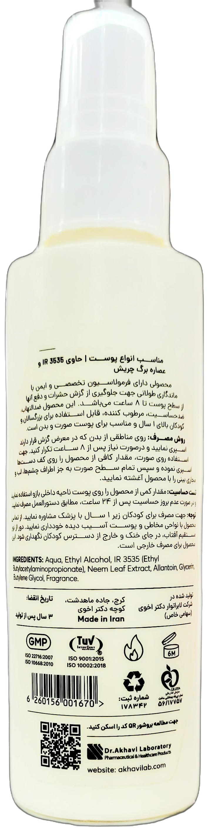 اثربخشی محصول مراقبت از پوست: جلوگیری از گزش حشرات و دفع آنها از سطح پوست تا ۸ ساعت، ضدالتهاب