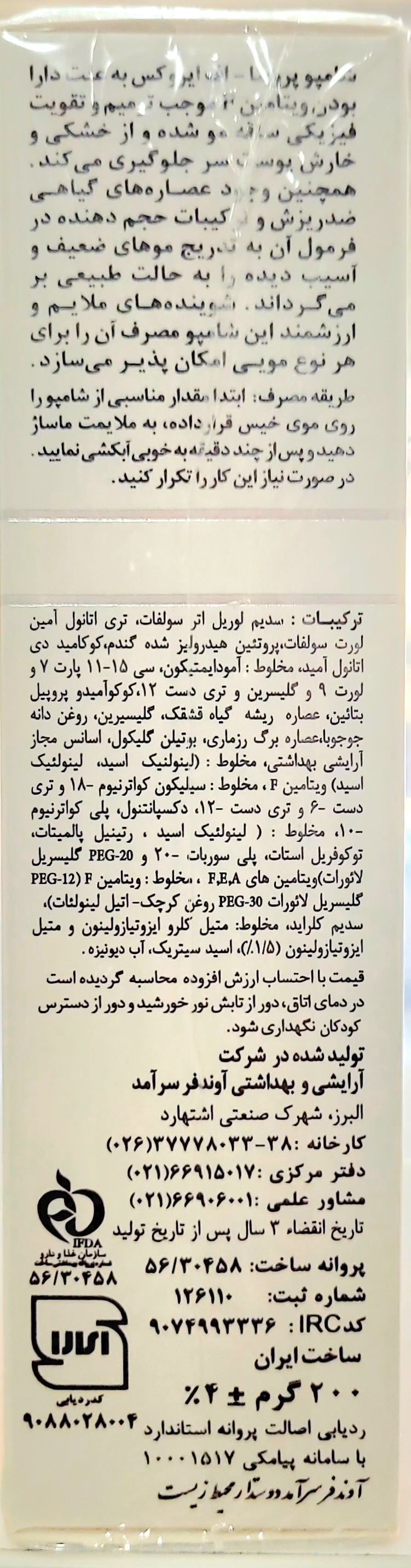 شامپو تقویت کننده PROVITA-F ایروکس ۲۰۰گرمی