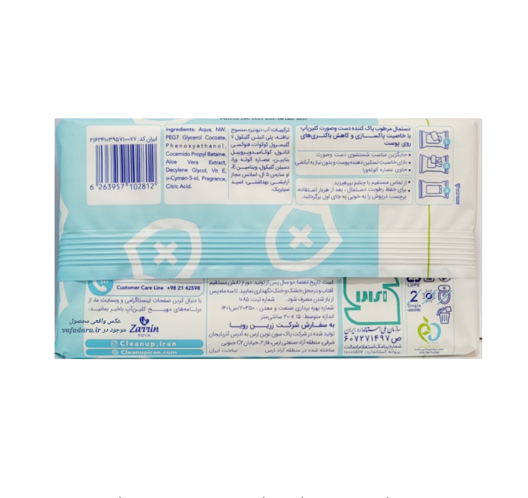 مشخصات محصول: با خاصیت پاکسازی و کاهش باکتری، جایگزین شستشوی دست و صورت