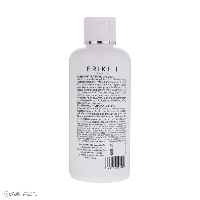 دیدن محصولات مرتبطلوسیون مرطوب کننده بدن اریکه حجم 200ml، دارای خاصیت مرطوب کنندگی با قدرت جذب سریع و کامل میباشد و محصولی فوقالعاده موثر و مقرون به صرفه به شمار میآید. از ویژگیهای این لوسیون قابلیت آبرسانی فوقالعاده و دوام اثر طولانی است. لوسیون مرطوب کننده بدن اریکه حاوی پانتنول به عنوان تسکین دهنده و ضد التهاب است و با داشتن عصاره گیاه آلوئهورا به عنوان مرطوب کننده و بازسازی کننده قوی عمل کرده و همچنین با قدرت جذب سریع و کامل، لطافت و شادابی را به پوست میبخشد.