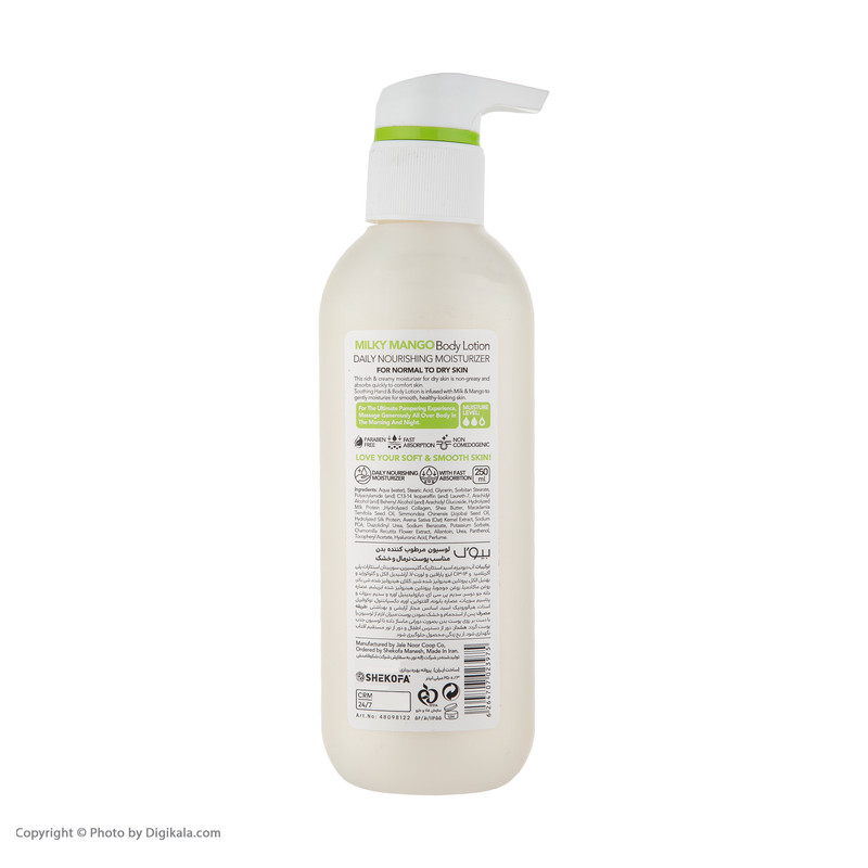 لوسیون بدن بیول مدل شیر و انبه حجم 250 میلی لیتر