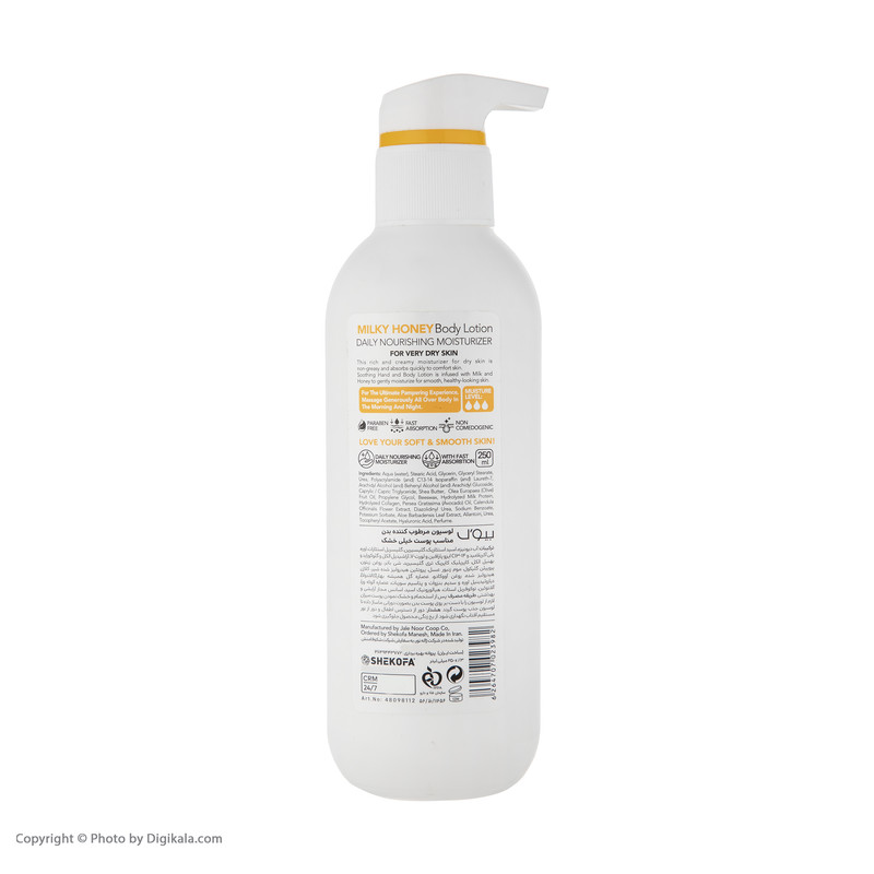 لوسیون بدن بیول مدل شیر و عسل حجم 250 میلی لیتر