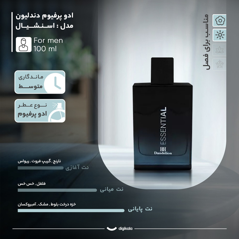 ادو پرفیوم مردانه دندلیون مدل اسنشیال با رایحه خنک و تلخ حجم 100 میلی لیتر